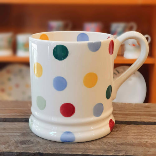 Emma Bridgewater pottery is handmade and hand-decorated in Stoke-on-Trent, England, using traditional Staffordshire techniques.